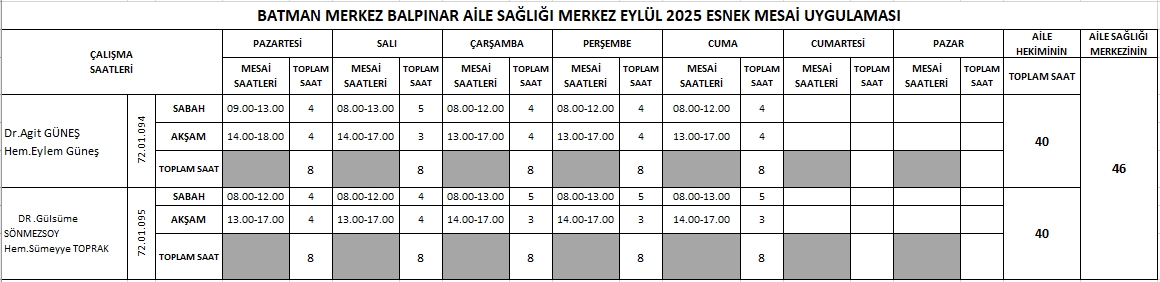 Çalışma Saatlerimiz
